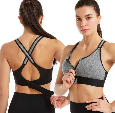 grey and hot pink sports bra, specifically listed as