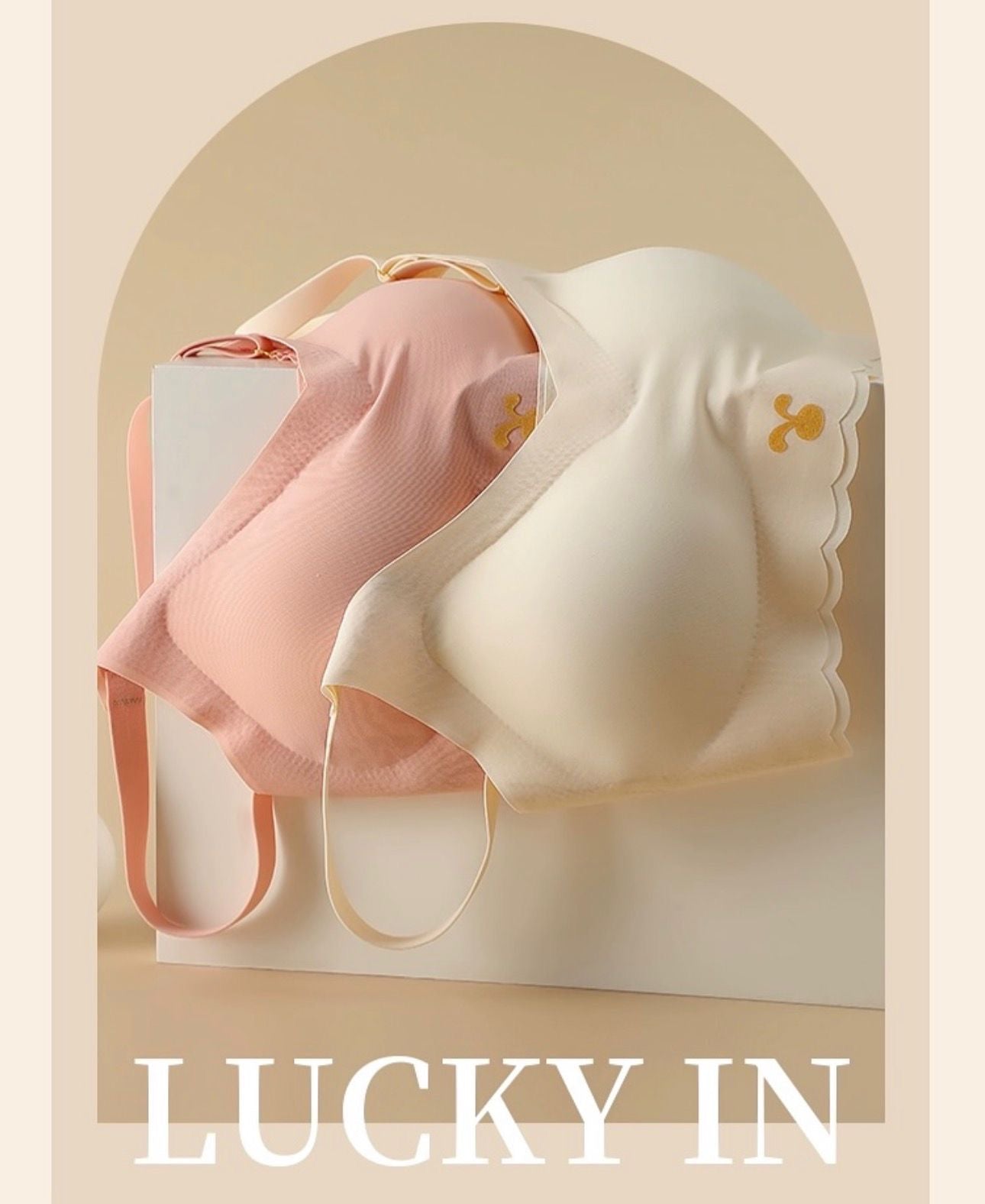 The product displayed is a set of women's seamless bralettes and matching underwear.